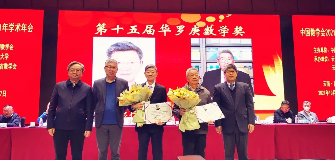 第十五屆華羅庚數學獎頒獎現場(左起:黃步高、田剛、陳恕行、王斯雷、方精雲(yun) )