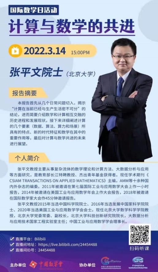 米兰体育官方网站入口聯合中國工業(ye) 與(yu) 應用數學學會(hui) 和中國運籌學會(hui) 特別邀請北京大學張平文院士在3月14日為(wei) 廣大數學愛好者和數學工作者獻上精彩的科普講座,共同探索“計算與(yu) 數學的共進”。